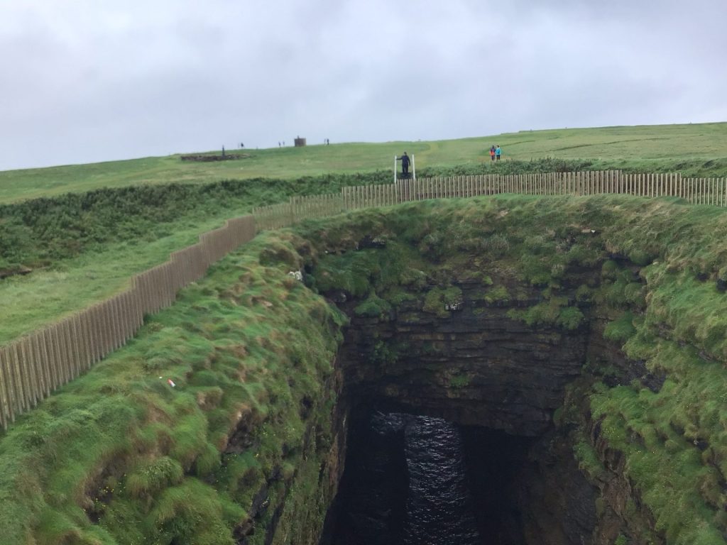Saint-Patrick a bien fait les choses et surveille ce lieu impressionnant. Vu qu’il encore tôt (16h30) et le nombre de touristes encore présents, je décide de redescendre au village me poser boire ma Guinness. Sur le parking, je croise un couple de sarthois (elle de Le Mans et lui de St-Calais) et une famille milanaise impressionnée par mon périple.