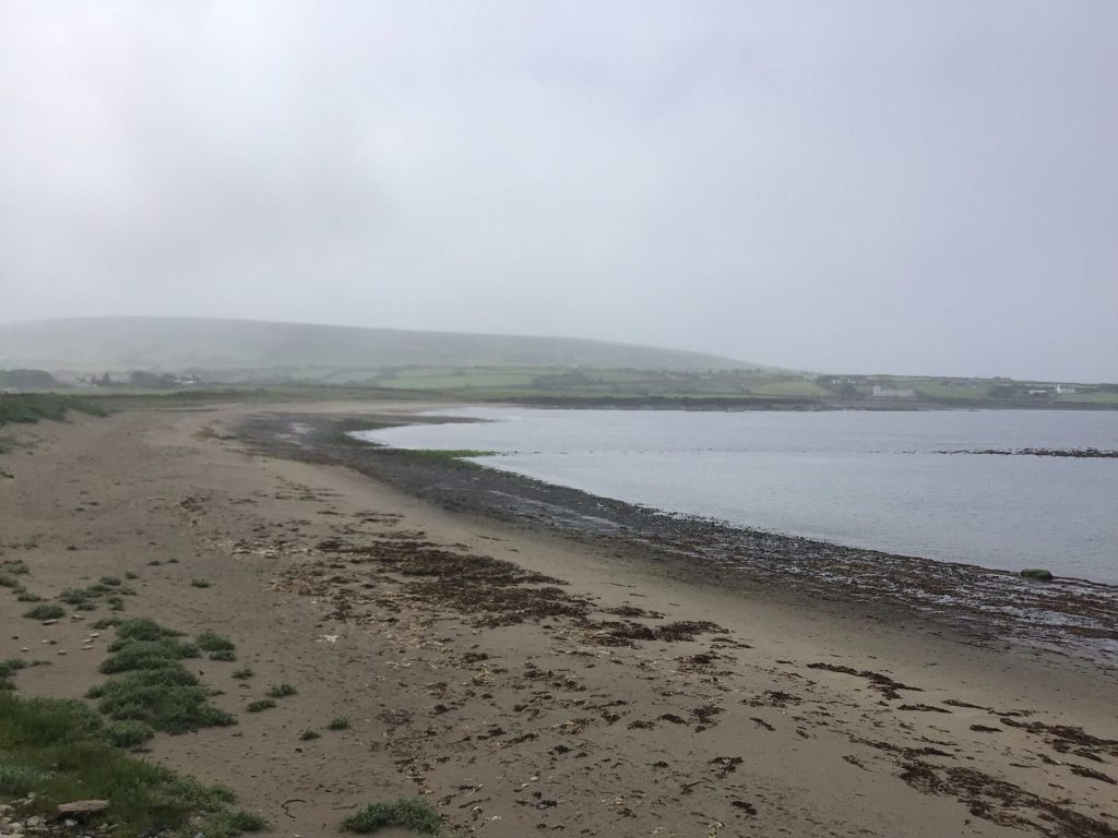 Vers 16h, j’arrive à BallyCastle. Je m’arrête faire quelques emplettes et aussi, vu la météo, recherché un hébergement au sec. Après consultation d’un site, je trouve une auberge de jeunesse à Ballintoy situé à 11kms de BallyCastle pour 29€ la nuit. Parfait. Je m’apprête à réserver mais je vérifie quand même où se situe cette auberge. Je ne comprends pas. J’ai beau modifier la boussole. Il m’indique le lieu à 211kms d’ici ?!? Ce couillon m’a trouvé une adresse … mais en Irlande du Nord. What a fuck ! Je reprends ma route en suivant toujours l’EV1. Il n’y a pas grand monde à la plage cet après-midi. C’est étonnant !