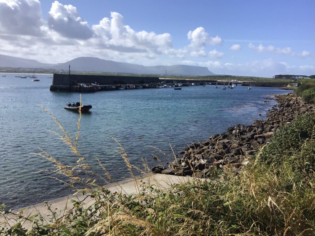 Puis je prends la route de Mountcharles pour y trouver un bivouac. Je longe l’estuaire jusqu’à tomber sur le petit port et un café fort sympathique. Par contre, pas de Guinness mais un Sprite. Cela n’a quand même pas la même saveur …