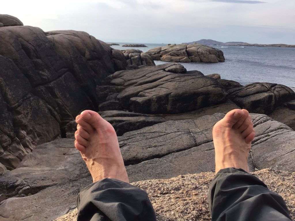 Il est l’heure de casser la croûte, toujours à l’abri du zef, après cette nouvelle journée incroyable. Puis de bouquiner l’Equipe, les pieds en éventail, en attendant que le soleil ne décline.