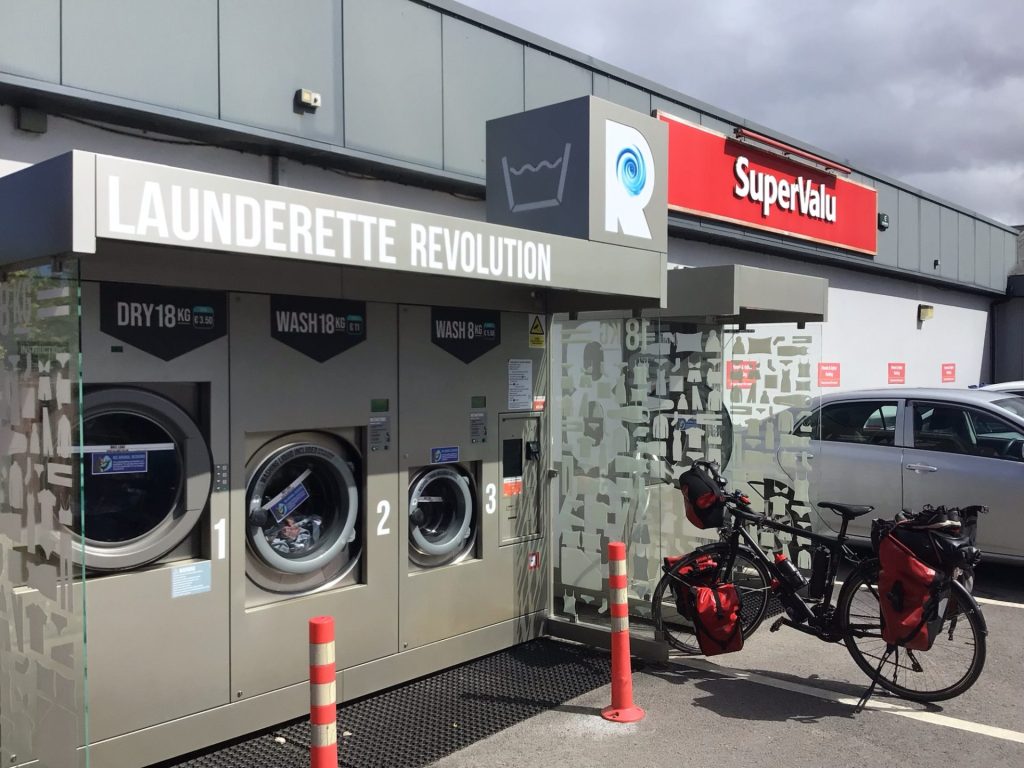 Alors que je n’ai toujours pas de nouvelles des proprios pour savoir si je peux arriver avant 16h, je retourne en ville à la recherche d’un coiffeur. Manque de bol, en ce lundi, les 2 barber’s et les 2 coiffeurs sont fermés. Tant pis. Par contre, je tombe sur un magasin qui commercialise, entre autres, des vêtements pour les pros. Je fais l’acquisition d’un ciré noir, un peu plus lourd et encombrant que ma veste jaune Décath, mais qui devrait beaucoup mieux me protéger de la pluie. Adieu ma tenue de marin-pêcheur qui a quand même fait le tour d’Europe !