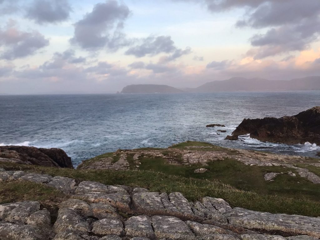 Je peux savourer ma bière fraîche artisanale pour arroser cette nouvelle belle journée de vadrouille. Puis, une fois mon dîner avalé, je pars faire ma séance de Qi Gong sur la pointe devant ce prodigieux paysage. Au fond, on aperçoit la dernière pointe la plus au nord de l’Irlande.