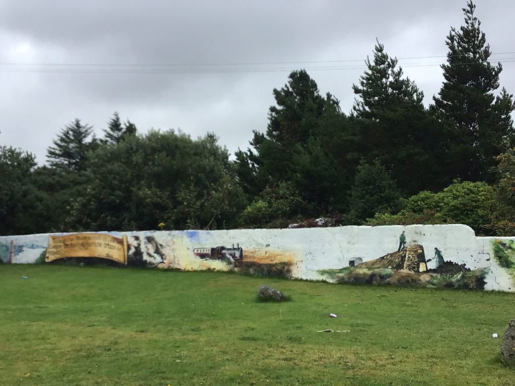 Je m’arrête ensuite dans le village de Carraig Airt pour y faire mes emplettes quotidiennes. En bord de mer, il y a un espace public abrité du vent. J’hésite à me poser. Mais c’est quand même au cœur du village. Je n’aime pas trop. Avant de reprendre la route, je regarde cette petite famille rentrant de sa balade à cheval.
