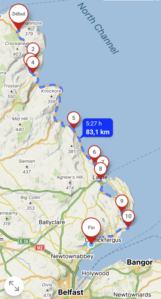 Je traverse les charmants petits ports de Cushendall, Waterfoot, Carnlough, Glenarm avant d’arriver à Ballygally. Tous ces villages sont bâtis en fond de baie, bien à l’abri sous la falaise.