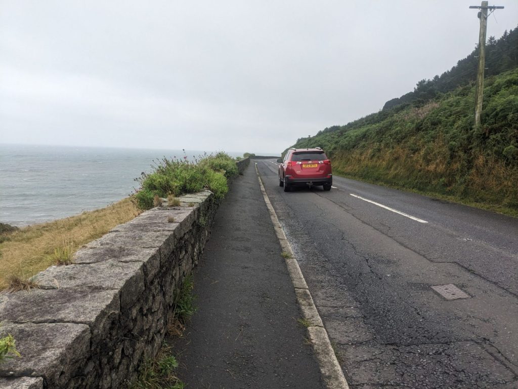 A 7h30, je retrouve la route A2 pour poursuivre ma descente au sud vers Dublin. Dès que je peux, j’emprunte le trottoir bien que le trafic soit plutôt en direction de Belfast en ce lundi matin. Je traverse à nouveau de charmants villages portuaires aux maisons colorées.