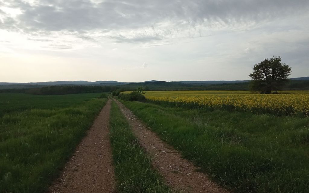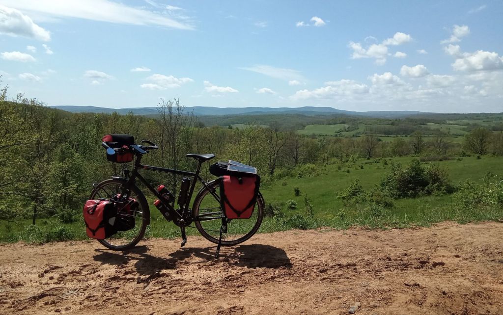 Par contre, de gros nuages font leur apparition à l’horizon. Il va falloir que je me hâte pour trouver un endroit où bivouaquer. J’arrive dans le village de Bliznak. Soit je coupe sur un nouveau chemin comme initialement prévu pour rejoindre Primorsko, soit je continue en suivant la route bitumée en suivant la trace TC qui me ferait arriver un peu plus au sud sur la Mer Noire. Je choisis ma 2è option. Je grimpe à nouveau en haut de la colline. Arrivé au sommet, je bifurque sur un chemin à gauche où je trouve un superbe emplacement.