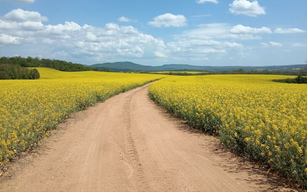 La nuit fut fort agréable sous mon chêne. Seul quelques animaux sauvages (sangliers, chevreuils, …) vinrent fureter autour de la tente. Mais cela ne me dérangea pas plus que cela. A 6h30, le soleil vint me rappeler que j’avais encore de la route à tailler. Après avoir plié mon barda puis pris un p’tit déj’ léger (pomme/chocolat/barre de céréales), je retrouve mon fidèle compagnon HakaOne. Nous sortons de la forêt après 400m de mauvais chemin. En faisant gaffe aux ornières, je me prends une branche d’épines dans la figure. Me voila zébré pour quelques jours !