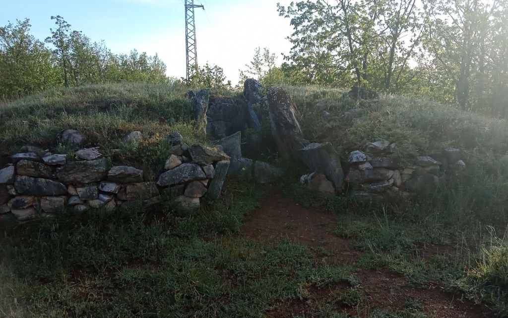 Au cours de la montée, je m’arrête devant un dolmen (même en bulgare, j’arrive à traduire). Mais quelle idée de construire un dolmen sous une ligne électrique. Ils ont un goût étrange ces bulgares !
