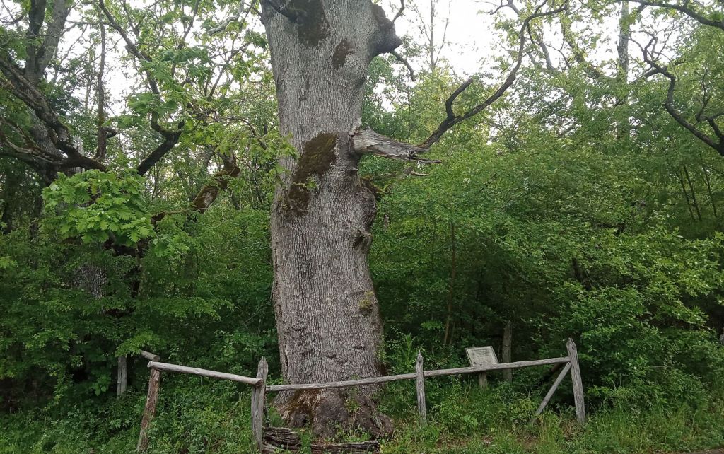 Puis je passe devant un magnifique chêne. Je ne comprends pas tout ce qui est inscrit sur le panneau mais il me semble que cet arbre aurait 700 ans au moins …