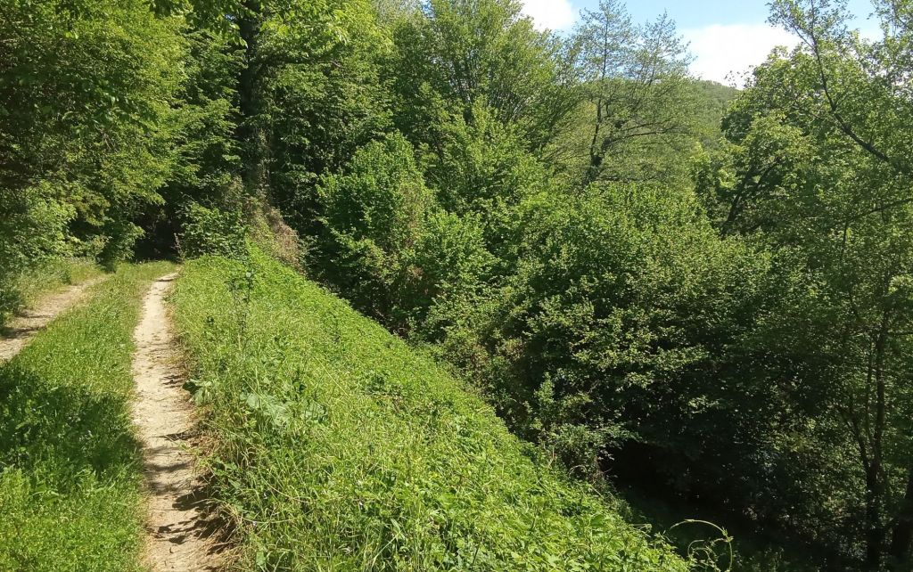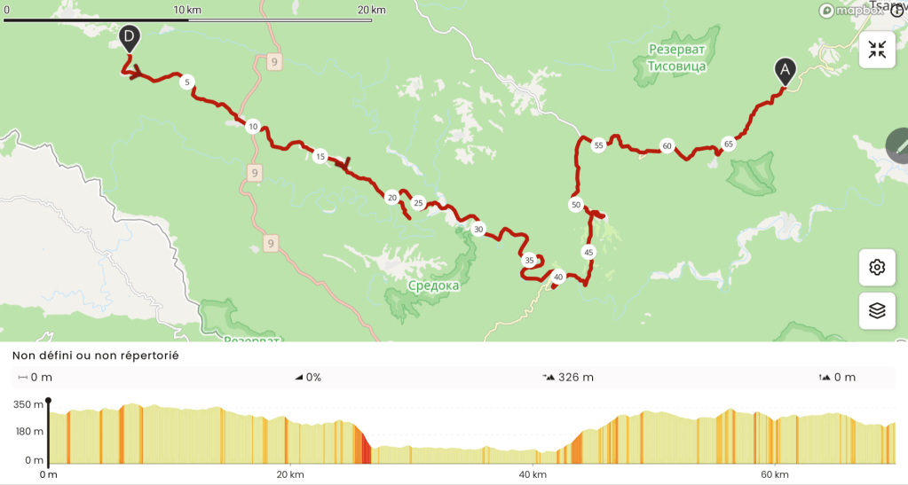 Le vieil homme, probablement sourd comme un pot (de yaourt bulgare évidemment !), me hurle dessus. Il m’indique une trace pour poursuivre ma route. Il est gentil le pépère mais c’est un sentier de randonnée. Je préfère rebrousser chemin et retrouver un peu plus bas un sentier tracé TC.