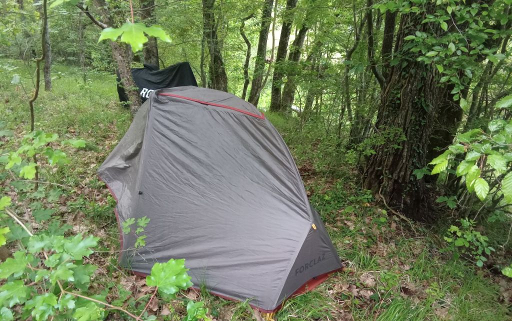 Je ne vais pas prendre le risque de filer jusqu’en bord de mer. Un peu au_dessus de Izgrev (« or is not grev pour la SNCF ? » … telle est la question en ce pont du 8 mai férié en France), je trouve une source en bord de route. Pas très loin, un abri pour pique-niquer. Je m’y arrête. Ce sera parfait pour ce soir. Je n’ai plus qu’à installer le bivouac un peu plus haut pour être à couvert. C’est la fin d’une superbe journée « Into the wild ». J’adore et je me régale.