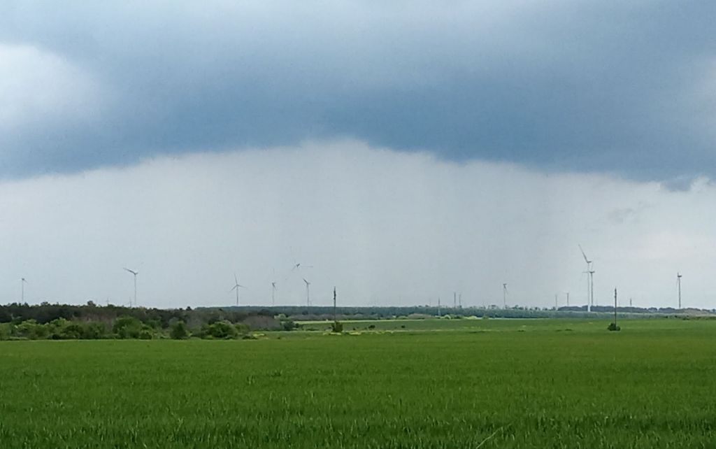 Après une heure passée à discuter, je reprends la route sous le crachin. Certainement, le ciel qui pleure cette séparation. En effet, c’est toujours difficile de repartir lorsqu’on rencontre des personnes sympas et attachantes. Mais cela fait aussi partie du voyage … Je rejoins à nouveau la route 9 à travers une grande plaine plantée de blés et d’éoliennes.