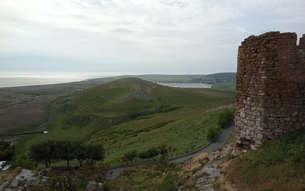 Je reprends ma route qui contourne la lagune. Après avoir traversé le camp militaire de Babadag, j’aperçois au loin, derrière les blés toujours berces par le vent du sud, la forteresse de Enisala perchée à 99 mètres d’altitude. Comme personne ne m’attend pour déjeuner, je décide d’y monter. Encore une belle grimpette pour accéder à l’entrée.