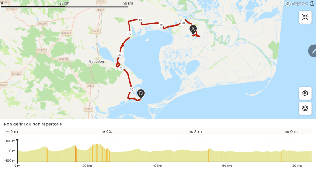 92kms, 5h12, 17,7km/h, 494D+ 495+, nuageux, bivouac