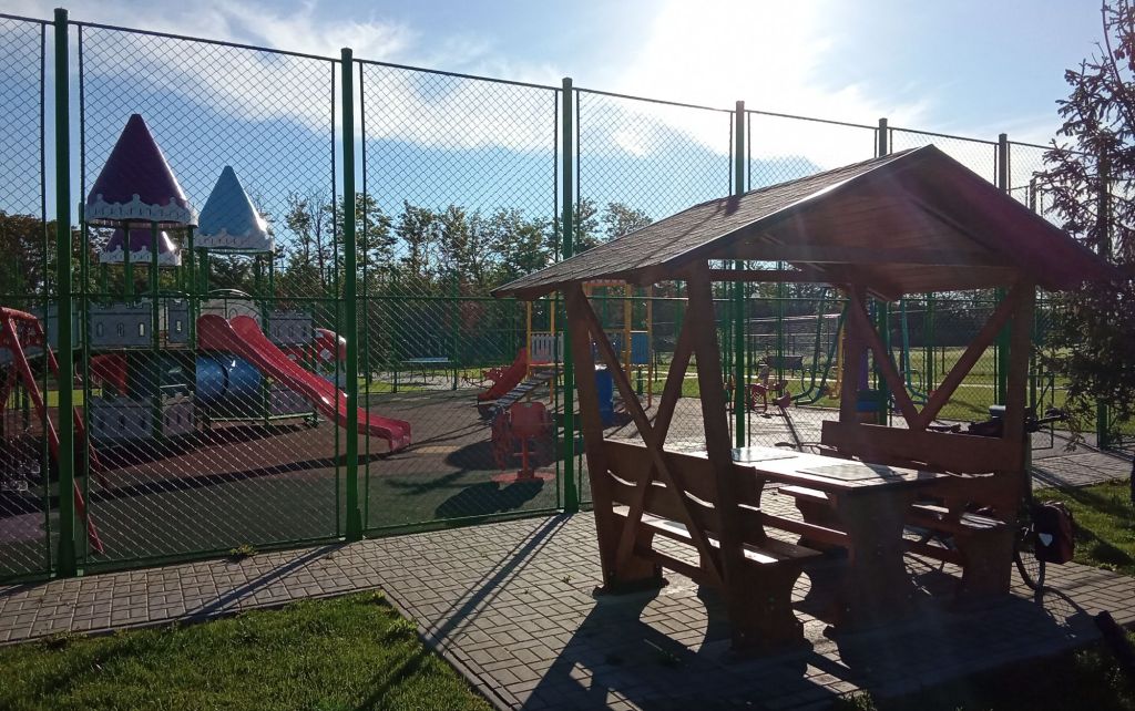 Après avoir coupé à travers champs (merci la trace cyclotouriste !), je me pose dans le village de Maia pour prendre mon p’tit déj’ dans un parc. Comme dans beaucoup de ces villages, sont présents de très beaux parcs avec jeux pour enfants et terrain de city. Derrière se trouve également un terrain de foot à la superbe pelouse et avec une petite tribune latérale comme souvent.