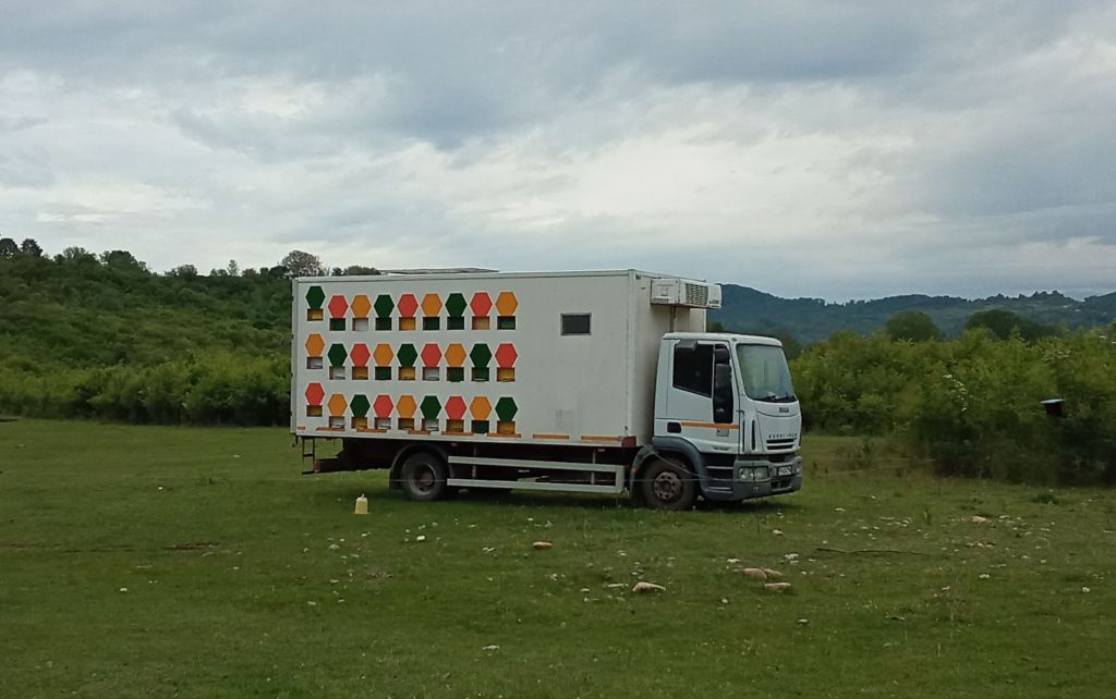 Ma trace m’envoie dans la banlieue à Cornu avec de belles grimpettes pour me mettre en jambe. Je passe devant ce camion planté au milieu d’un champ. Avant-hier, lors de mon bivouac près de la rivière, j’en avais déjà vu un. Je pensais que c’était un camion abandonné. Mais, après m’être fait piquer par une abeille, j’ai percuté que c’était un camion apicole.