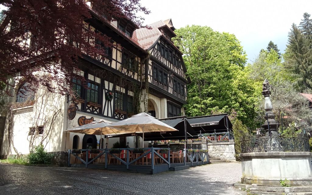 Vers 10h30, j’arrive enfin à Sinaia considéré comme un des plus beaux sites roumains. A l’entrée, je passe au-dessus de la rivière Prahova qui doit prendre sa source pas loin d’ici. Cette ville étendue dans une vallée est en fait une grande station montagnarde. D’ailleurs, il y a une station de ski au-dessus, accessible par un télésiège, dont le sommet (mont Furnica) culmine à 2.103 mètres. Cette ville me fait penser à Bagnères-de-Luchon. Je me pose dans un café branché en plein centre. Je retrouve les prix occidentaux à 6€ l’américano/muffin.