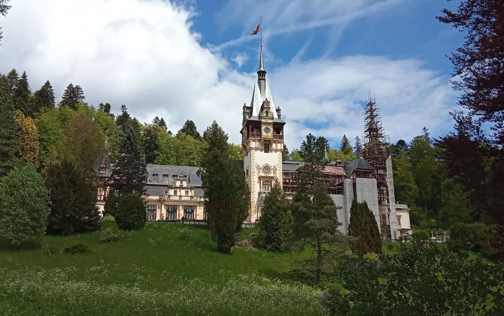 La pluie a repris. J’attends que ça se calme avant de me rendre au Castelul Peles. Et ça grimpe sec ! J’ai du bol. Une belle éclaircie m’accompagne pendant ma visite.