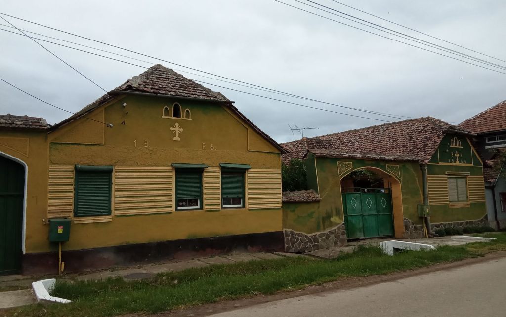 Je profite de la traversée de ce village pour faire un film Insta avec ces double-maisons typiques reliées par un porche et avec l’année de construction dessus (celle-ci date de 1965, je n’ai pas réussi à en trouver une de mon année de naissance). Chaque doublon est peint d’une certaine couleur ce qui donne des villages très colorés.