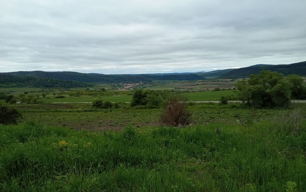 Je continue sur cette charmante route vallonnée dont les collines sont couvertes de forêts. Par contre, l’heure avance et il commence à faire très faim. Je traverse le village de Bradeni qui ne m’inspire pas. Puis j’aperçois au loin dans la vallée celui de Apold. A l’entrée, un M.M avec une terrasse m’invite à me poser. Depuis ce matin, je n’ai vu aucun restaurant. La patronne est à nouveau charmante. Elle me parle en anglais. Je fais quelques emplettes, sors mon réchaud et me fais chauffer une boîte de boulettes de viande avec des patates. Cela devrait me caler jusqu’à ce soir.
