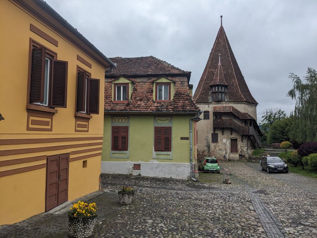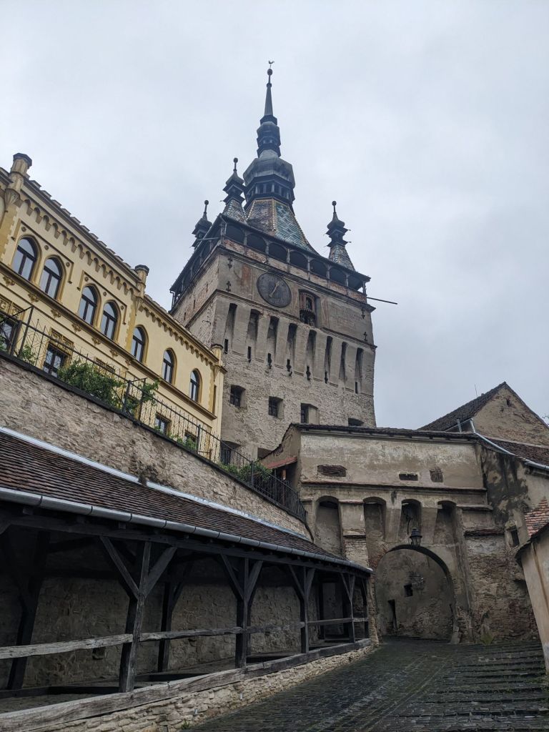 Je me prends un copieux p’tit déj’ en écoutant Francis CABREL aux chansons aussi mélancoliques que la météo. Puis, comme j’ai un peu de temps en ce dimanche matin off, je vous fais un petit topo sur ce pays. « La Roumanie est un pays d’Europe du Sud-Est connu pour la région forestière de la Transylvanie, entourée par les montagnes des Carpates. Sighișoara figure parmi ses villes médiévales préservées. Le pays compte également de nombreux châteaux et églises fortifiés, en particulier le château de Bran, au sommet d’une falaise, lié pendant longtemps à la légende de Dracula. Bucarest, la capitale du pays, comporte le palais du Parlement, un énorme bâtiment gouvernemental datant de l’époque communiste. » Sighisoara … je suis en plein dedans !