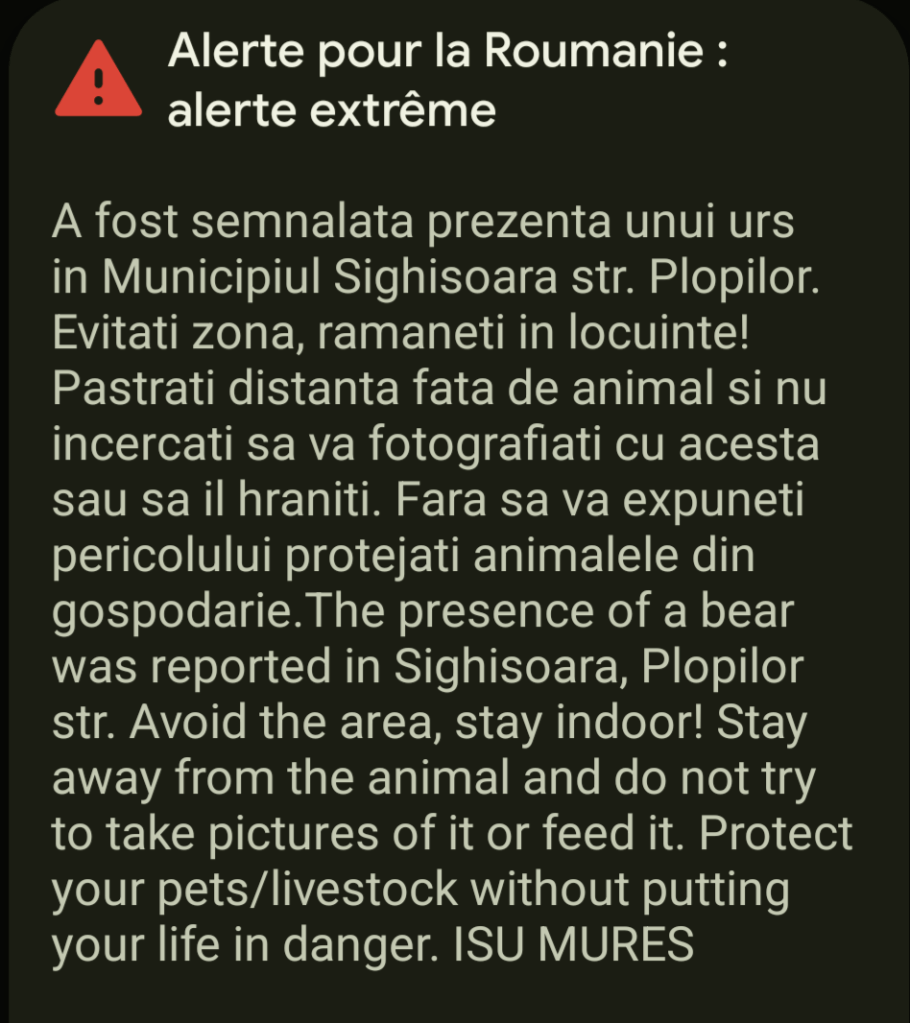 Réveillé à 6h30 par mon horloge biologique bien réglée, je me recroqueville sous ma couette et replonge jusqu’à 9h’ du mat’. J’avais besoin de récupérer. Je tire les rideaux. Le ciel est à nouveau d’un gris déprimant. Il pleut. J’ai bien intuité de faire un arrêt. Mais, en regardant la météo, cela ne s’arrange pas pour la semaine. Les Carpates ont l’air de bloquer les nuages et de déverser son acrimonie sur son rude peuple. On verra bien … De plus, je reçois une nouvelle alerte sur mon téléphone. En ce dimanche, un ours est en visite à Sighisoara !