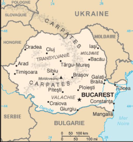 La superficie de ce pays est de 238.397km2 (2 fois plus petite que la France). Sa population est d’environ 20 millions d’habitants (80 hab. / km2). Une forte majorité de la population s’identifie comme roumaine sur le plan ethnique (89 %) et de tradition chrétienne orthodoxe (81 %). Sa monnaie est la leu roumain (RON) : 1€=5RON. Le SMIC est à 814€ net/mois. Le prix du livre d’essence à 1,40€.