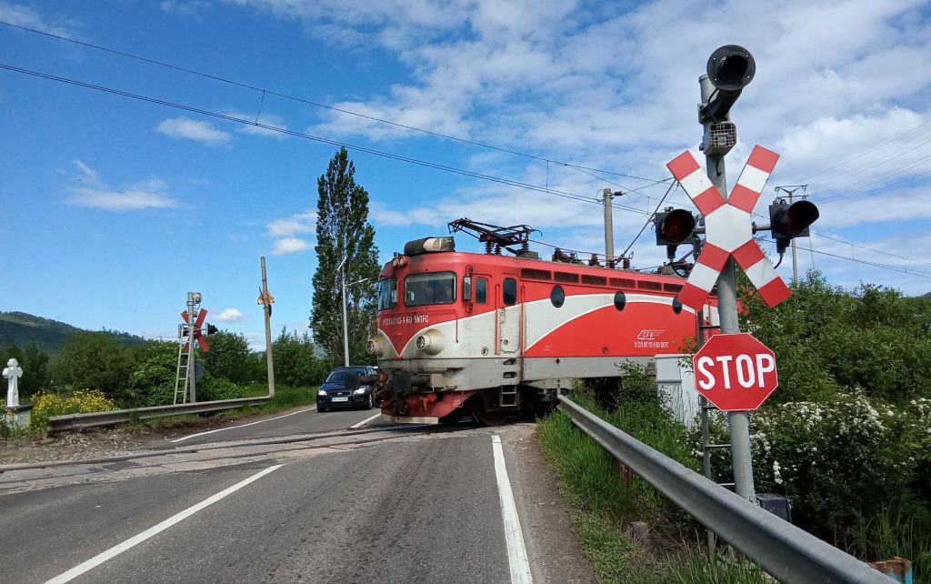 Je circule sur la route DJ209C avant de descendre dans la vallée, retrouver la route nationale DN2 et longer la rivière Moldova. Sur cette route nationale, un feu clignotant avec une alarme sonore arrête la circulation. Au bout de quelques minutes, un train traverse cet axe principal sans passage à niveau. Et, miracle, j’ai enfin retrouvé le soleil et le ciel bleu !!!