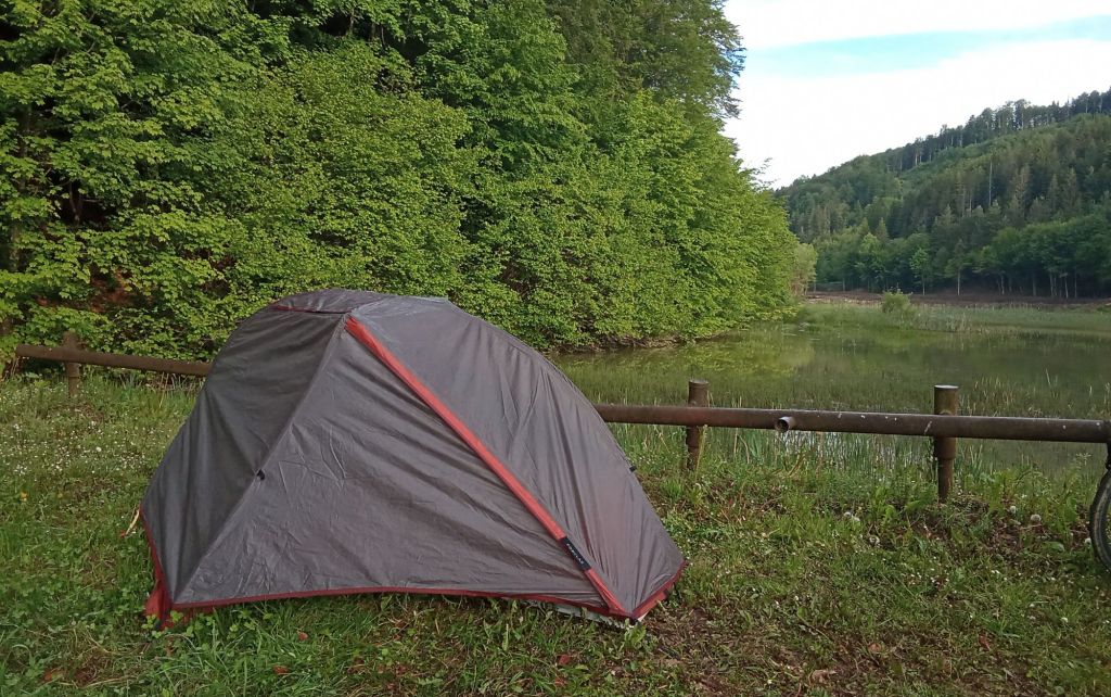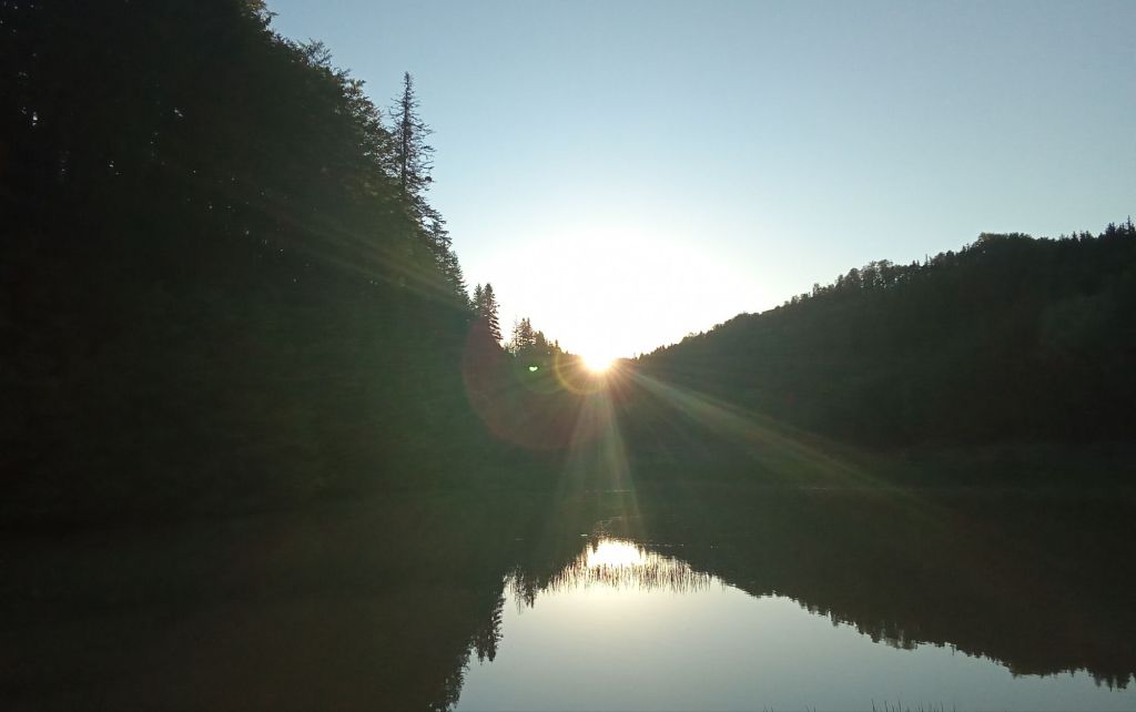 J’ai repéré un barrage un plus haut dans la montagne. En y allant, je croise un garde-forestier en 4*4. Il me déconseille de dormir dans la forêt toujours à cause des ours qui protège leur progéniture. Cela me rappelle le film The Revenant avec Léonard DI CAPRIO. Par contre, le barrage semble lui convenir. Je m’y rends donc et trouve une esplanade herbue pour planter mon bivouac. Cela faisait longtemps. Il est temps de prendre ma douche au soleil, de boire une bonne bière fraiche accompagnée de cacahuètes en rédigeant ces lignes puis de me faire la popote (haricot blanc/fromage/yaourt). Je termine la soirée en lisant et attendant que le soleil bascule à l’ouest derrière les Carpates.