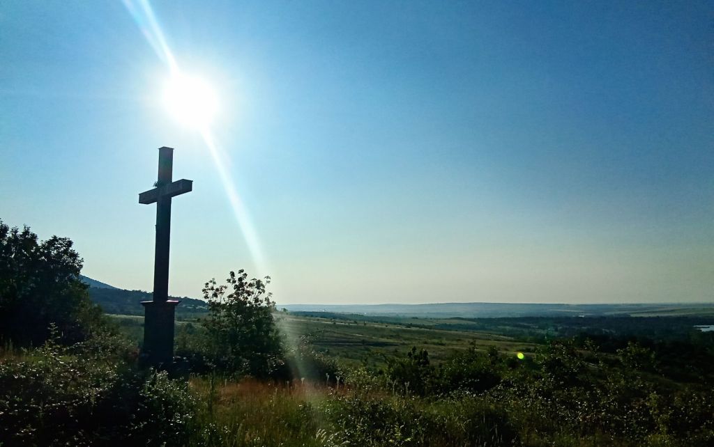 Au loin, j’aperçois le clocher du village de Gyöngyöstarjan. J’y arrive en milieu de matinée. Mais il n’y a aucun café pour m’accueillir. Ce sera dans une boulangerie où je prendrai, assis sur les marches, mon café matinal accompagné d’une énorme pâtisserie à la cannelle, vanille et chocolat. Je commençais à être vraiment affamé. Après cette pause , je prends une pause spirituelle à l’intérieur de cette belle petite église réformée.