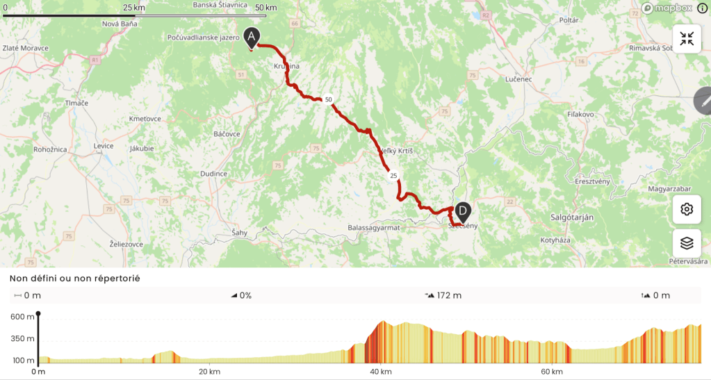 Puis je reprends la route qui m’amène dans la vallée et dans la ville industrielle de Krupina. De là, je grimpe à nouveau dans la forêt pour me diriger vers la ville touristique de Banská Stiavnica. C’est d’un calme. Je monte tranquillement sur la petite plaque. A un moment, je m’arrête faire le plein des gourdes à une source bienvenue.
