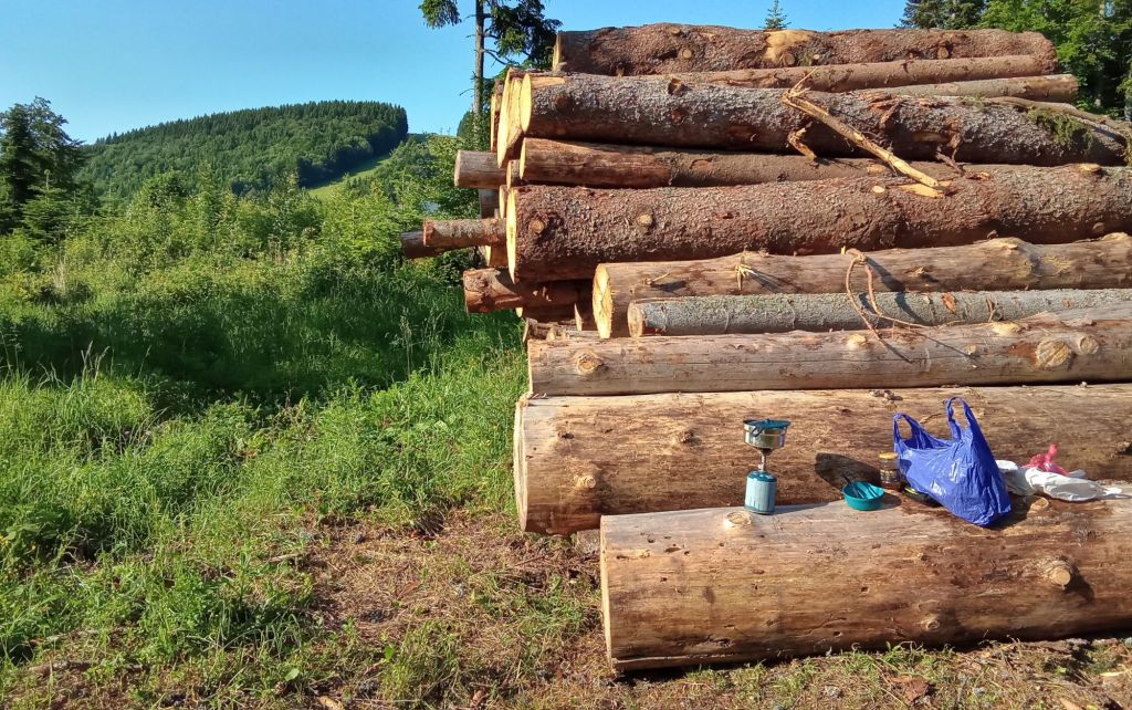 Ce matin, c’est à nouveau le froid qui me réveille. Cela faisait un bail. J’enfile mon tee-shirt à manches longues avant d’attendre que le soleil réchauffe un peu l’atmosphère. Vers 6h30, j’émerge. Le p’tit déj’ est servi sur la terrasse boisée au soleil. Je n’ai plus qu’à m’installer et prendre des forces avant de plier le campement.