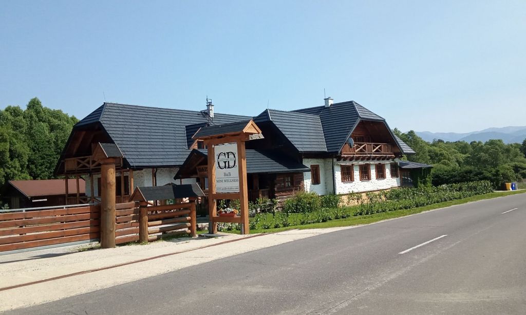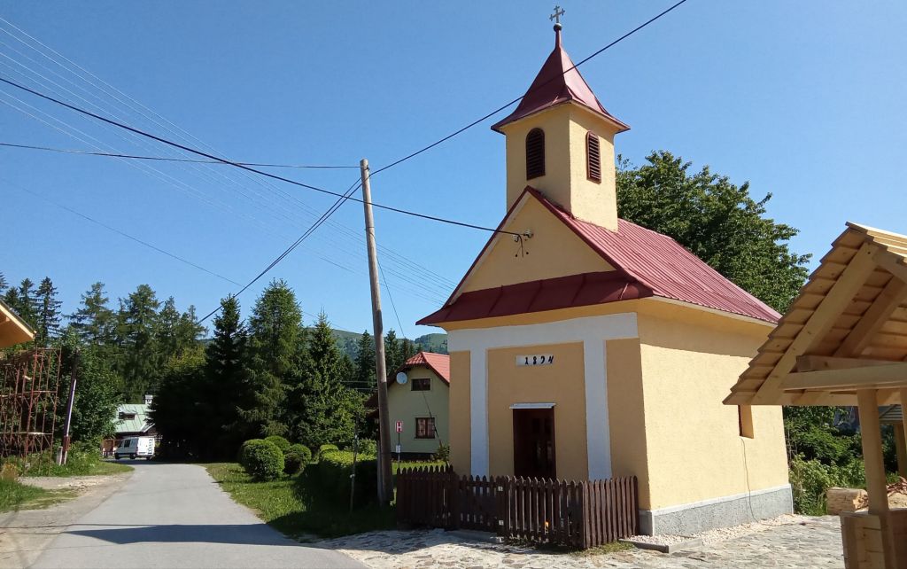 Je reprends ma route légèrement ballonnée vu ce que j’ai avalé. De plus, le soleil tape à nouveau. Je suis quelque peu léthargique. J’ai toujours la rivière Váh à main droite. C’est d’un calme. Arrivé dans le bourg de Liptoská Teplá, où je dois bifurquer, je suis attiré par la superbe église blanche à la flèche arrondie. Je décide d’aller la visiter. Hélas, comme d’hab’, toutes les portes sont verrouillées. Cela me frustre à un point ! Je repars en suivant le symbole C rouge. Je roule un moment dans la vallée jusqu’à Potok. Là, c’est une maison aux initiales G.D. qui attire mon oeil. J’en profite pour regarder mon GPS. Je ne suis pas dans la bonne vallée !!!