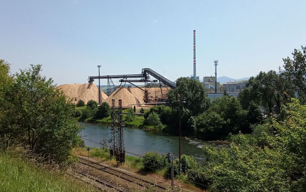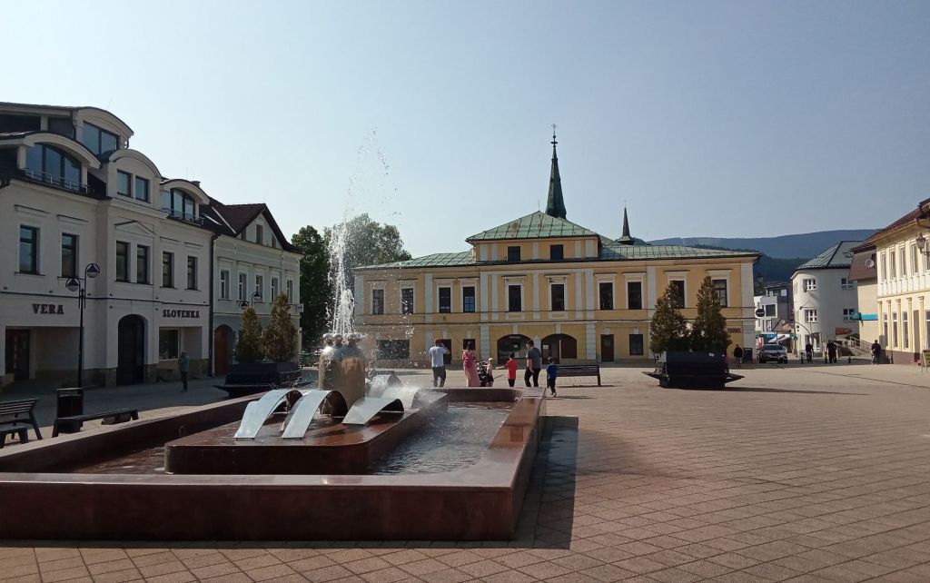 Je croise et double énormément de VTTistes retraité.es qui se baladent sur cet axe sans voiture. C’est quand même beaucoup plus confortable et agréable. Quant à moi, je roule bon train grosse plaque. Dans mon rétro, je repère un VTTisite une centaine de mètres derrière moi. Il va me suivre ainsi jusqu’à l’entrée de la ville de Ruzomberok que j’atteins au bout d’1h10. Je traverse la ville en longeant la toujours la rivière avant qu’elle ne se jette dans la rivière Váh . Puis je contourne la vieille gare avant de filer à l’est vers la ville de Liptovská.
