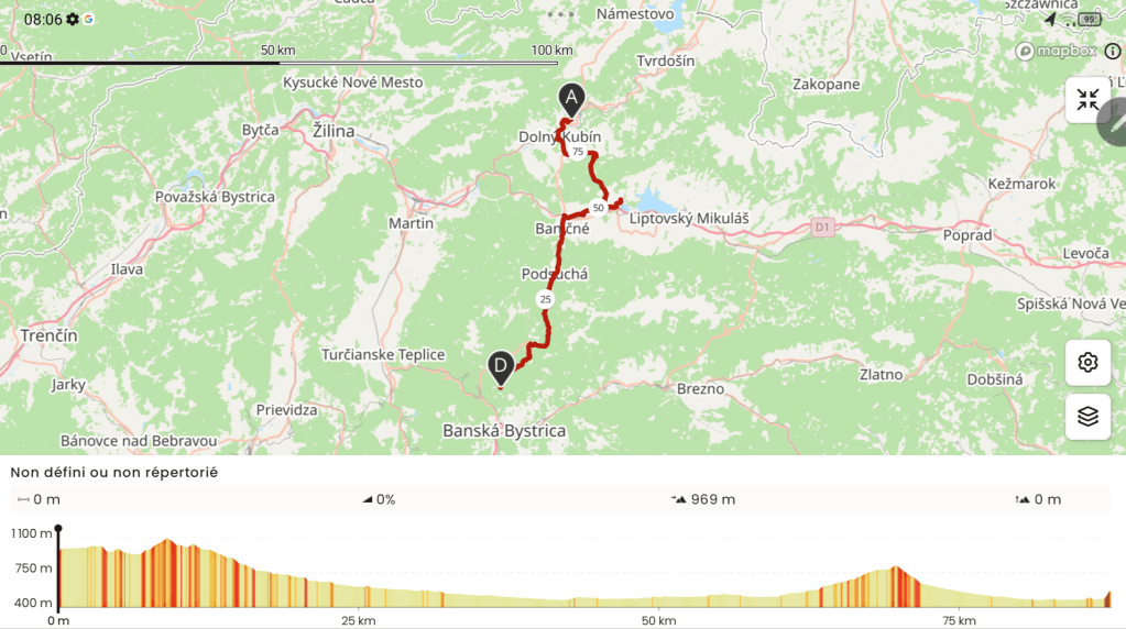 La descente sur l’autre versant est vertigineuse. J’atteins les 65km/h (record 92km/h dans la descente du Tourmalet avec mon ex-vélo carbone Rocco). Après le village de Osádka, ma trace me fait à nouveau couper dans la montagne pour rejoindre Oravsky Podzámok au nord où je me rends. Alors que je consulte mon GPS pour voir ce qui m’attend, un VTTiste déboule de cette petite route. Je l’interpelle et lui demande si c’est costaud. Il me conseille vivement de prendre la vallée. Je suis son conseil en retrouvant la route 59 qui m’emmène à Dolny Kubín. Comme hier, je traverse le charmant centrum et m’y arrête pour déguster une glace.