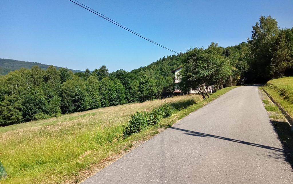 Après ce bon déjeuner, je me déguste une glace chocolat à l’extérieur vu que les desserts me paraissaient un peu cher au restau. Puis je me cherche un coin à l’ombre une fois sorti de la ville. Je sieste mes 30 minutes syndicales. Le soleil tape à nouveau fort. Je continue ma progression vers le nord-ouest en direction de la ville de Oswięcim en polonais, Auschwitz en allemand. Mais, auparavant, il me faut tracer à travers la campagne par de charmantes routes. Au loin, j’aperçois les contreforts des massifs que je viens d’emprunter.