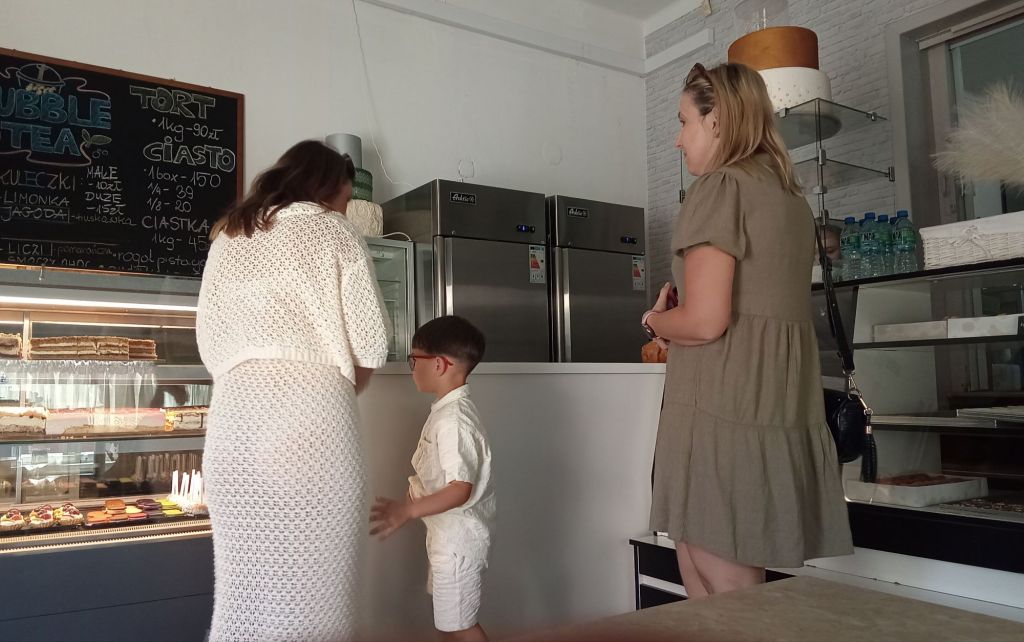 Une fois la route 956 (j’ai perdu 1 point !) rejointe, je repère sur Google Maps le seul café dans la bourgade de Zembrzyce. Je m’y rends. Coup de bol. C’est une pâtisserie-café. Il est 10h15. C’est l’heure de ma pause café-écriture. J’adore.