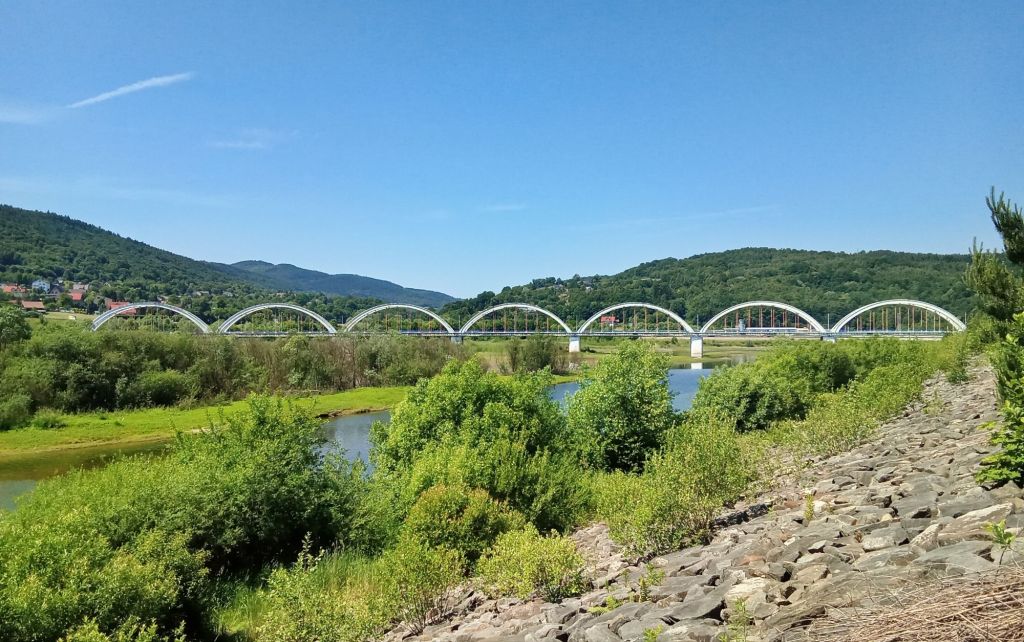 Je passe à droite de l’immense pont qui enjambe la rivière Paleczka en laissant Zembrzyce à main gauche. Cette ville est d’ailleurs construite entre les 2 rivières Skawa et Paleczka au-dessous d’un nouvel immense lac artificiel. Lac que je vais contourner par l’est en grimpant dans les collines.