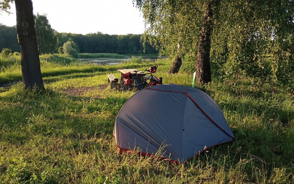 Je profite de cet arrêt au stand pour regarder mes cartes. Je ne suis plus très loin de l’objectif. Au sud de cette ville de 35.000 habitants, je vais traverser une zone de lacs. J’y repère un « lieu de repos ». Je m’y dirige. En fait, il s’agit d’une table au bord des lacs avec, effectivement, un lieu pour y planter ma tente et m’y reposer.