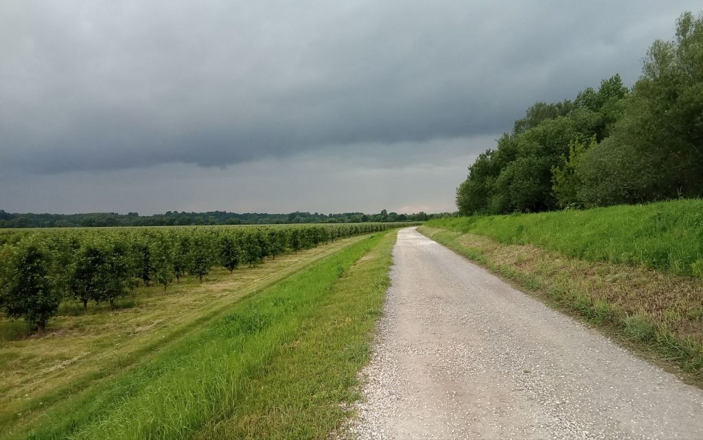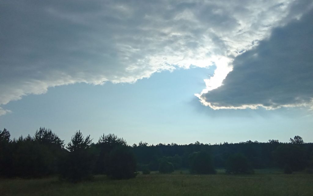 Le ciel s’assombrit alors que Lublin se rapproche. La rivière Opatówka se jette dans la Wisla que je retrouve. J’emprunte à nouveau un chemin qui la longe alors que de gros nuages noirs s’amoncellent dans le ciel. L’orage éclate.