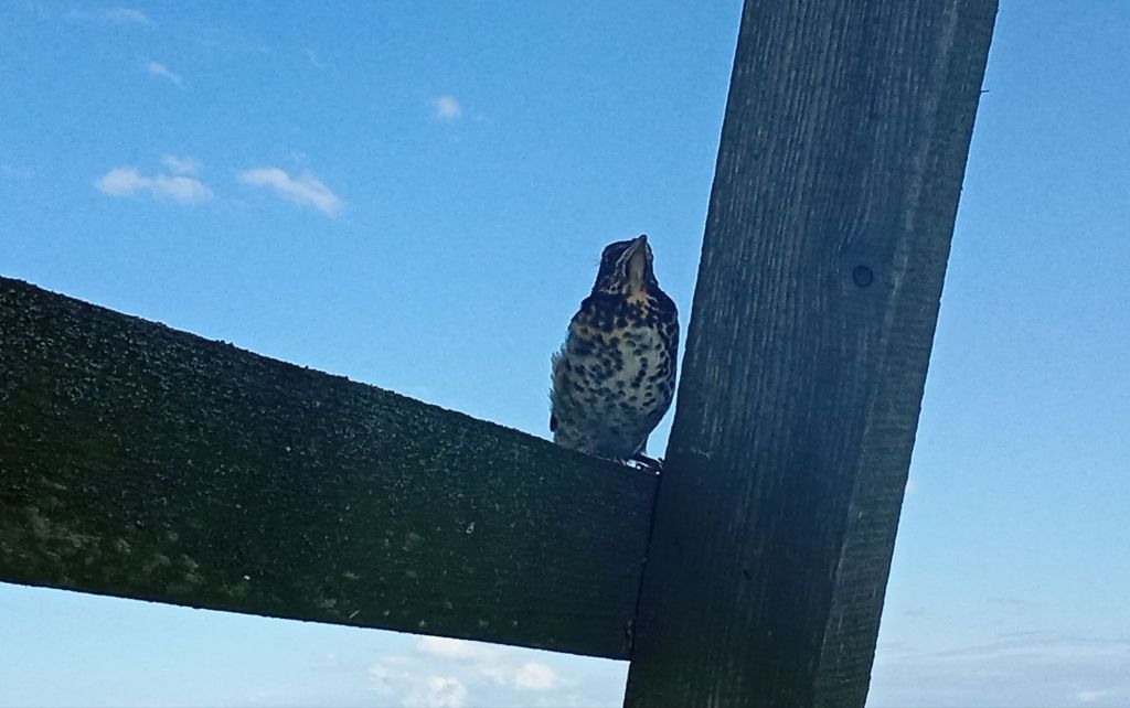 Derrière, il y a un promontoire, en bien mauvais état, pour chasseur. Un oiseau semble attendre que le vent se calme. Il faudra que je demande à mon concierge-météorologue Pascal, dont c’était les presque 20 printemps hier, mais également membre de la LPO quel est cet oiseau.