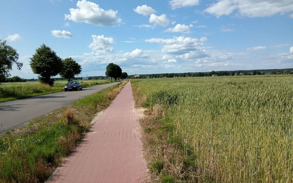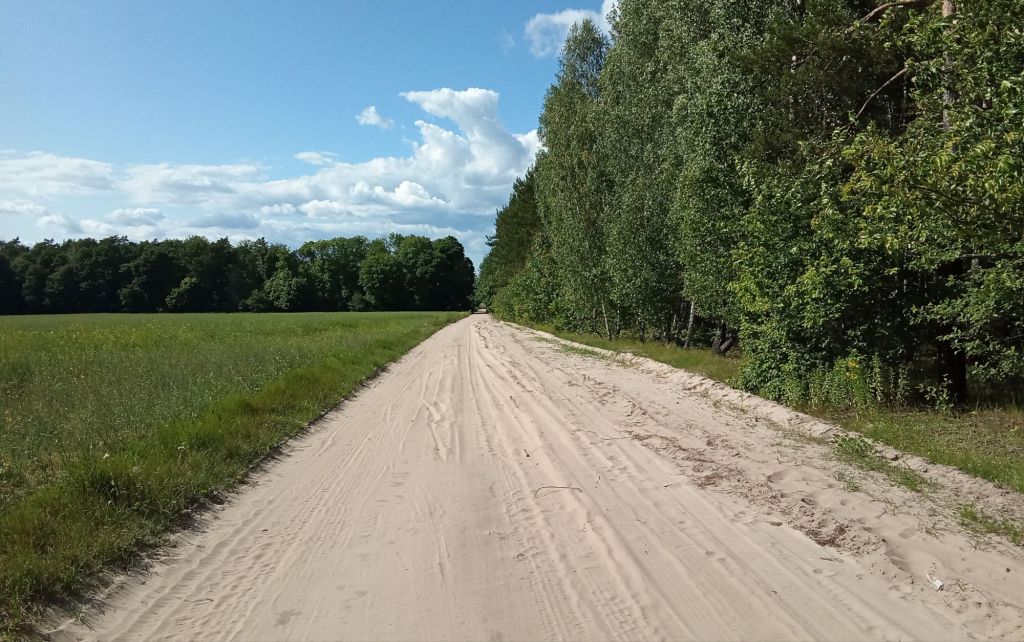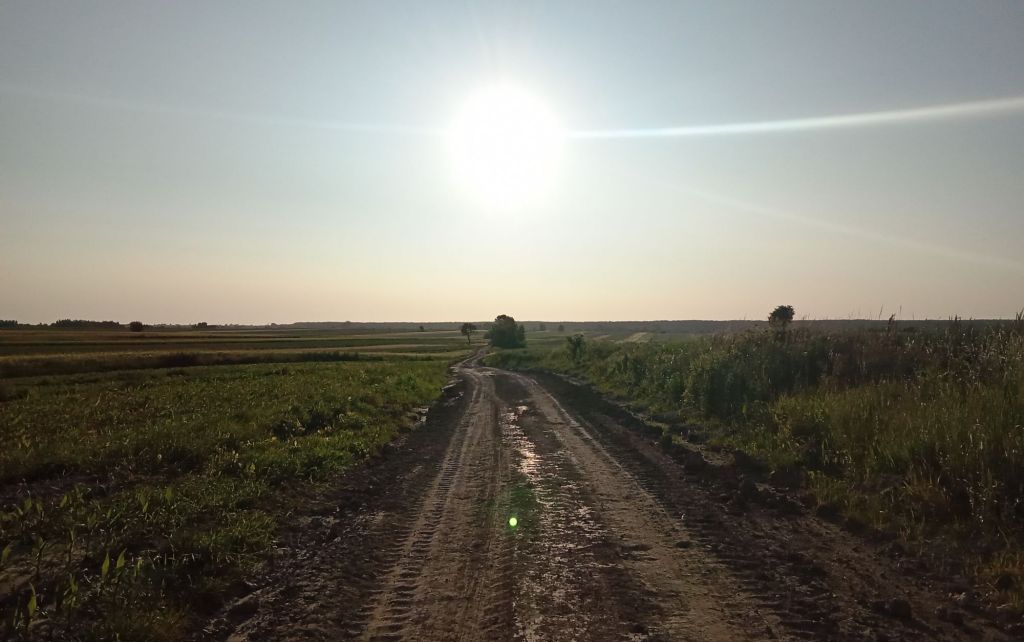 Ce matin, c’est un tracteur, et aussi la fraîcheur matinale, qui me tire de mon duvet. Je regarde mon compteur pensant qu’il est 6h30. En fait, il n’est que 5h30. Tant pis. Je me suis réveillé de toute façon. Je plie les gaules alors que la température avoisine à peine les 10°C. Je repars pendant 2 bornes sur mon chemin pour rejoindre les 3 villages de Księzomierz. Je m’arrête dans un abri devant les terrains de sport pour y déjeuner. La matinée va être chargée !