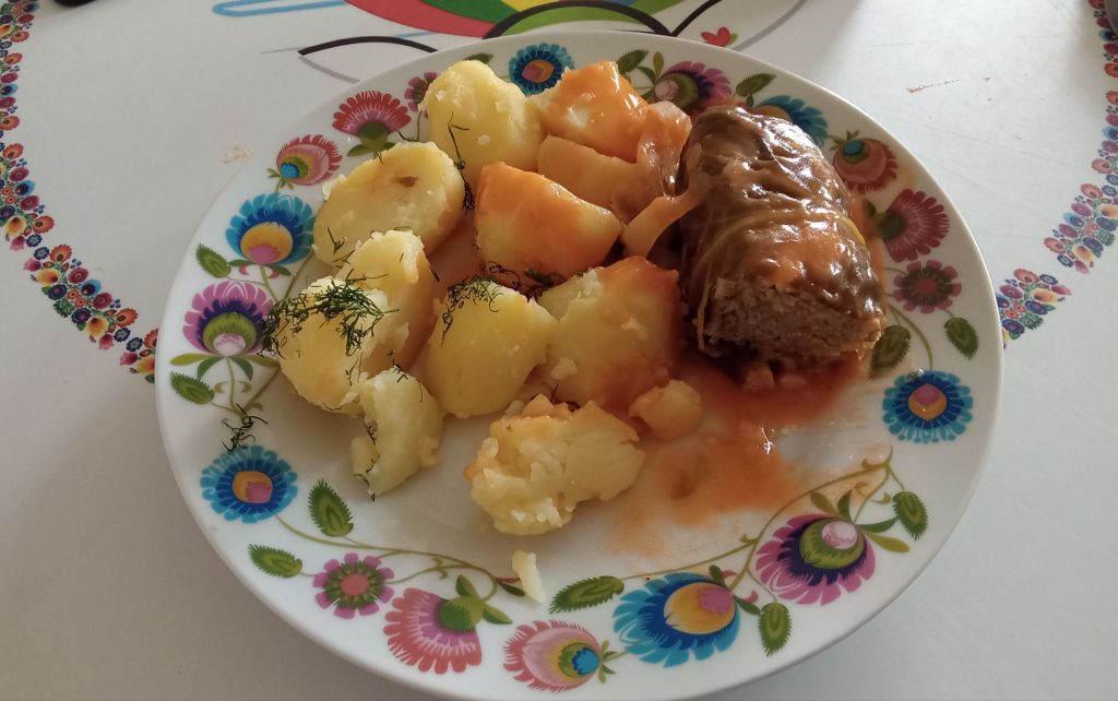Puis je pars à la recherche d’un restaurant en dehors des remparts et des attrape-touristes. Je trouve par hasard un petit restau dans lequel est proposé un menu du jour (soupe aux pâtes et choux farci avec PdT). Je le découvre au service. Heureusement que je ne suis pas difficile. Comme souvent, il n’y a pas de pain et pas de dessert proposé. Et ici, pas d’alcool non plus.