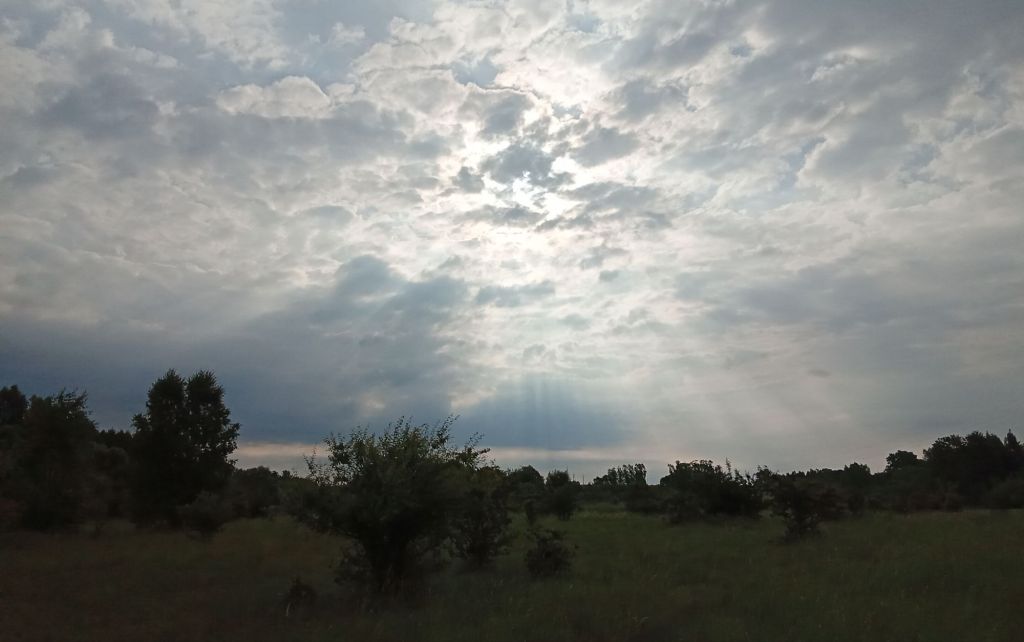 En ce dimanche matin d’été, c’est grasse mat’ ! Je pensais qu’il était vers 5h du mat’ quand j’ai ouvert les yeux. Ben non, il était « déjà » 6h36. Il faut dire que Râ a décidé de jouer à cache-cache avec les nuages ce matin. Je viens quand même de roupiller 9h30 d’affilée ! Mon corps devait vraiment avoir besoin de récupérer après ces longues étapes vent dans le pif. J’avale mon yaourt-muësli-sirop d’agave avant de reprendre la route.