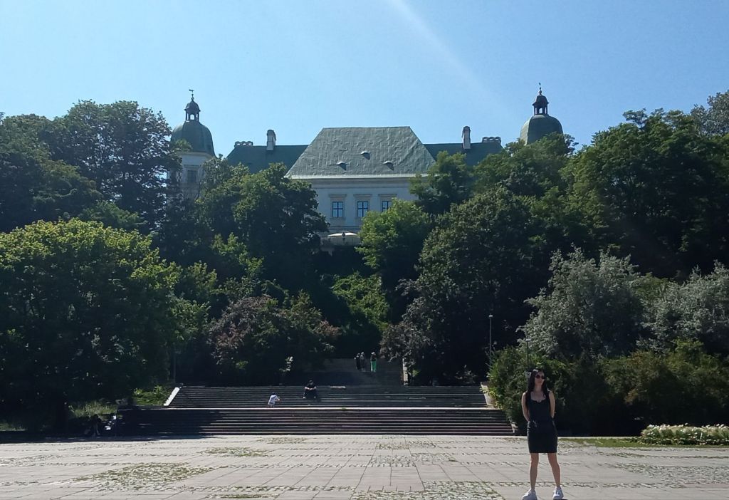 Je traverse ensuite un immense parc avec des plans d’eau sur le côté pour arriver devant le château d’Ujazdów perché sur une colline. Il faudra que je revienne me balader dans ce quartier demain car il y a beaucoup de châteaux et de palaces nichés au coeur de ce poumon vert.
