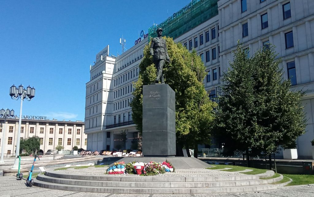 J’arrive dans le centre, toujours en suivant une belle piste cyclable. Je passe devant la statue du Général de Gaulle avec, au pied, des gerbes aux couleurs de la Pologne et de la France. Puis je parviens enfin à mon adresse qui se trouve dans une rue piétonne dans le quartier de Sródmiescie, centre des institutions nationales et des services municipaux ainsi que le siège des grandes entreprises et centre universitaire !