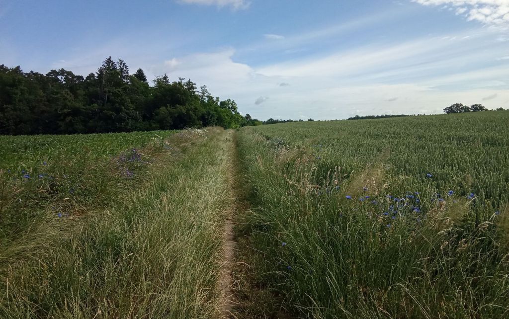 … avant de me retrouver au milieu des champs de céréales sur un chemin de tracteurs, où je croise un gars en gravel.