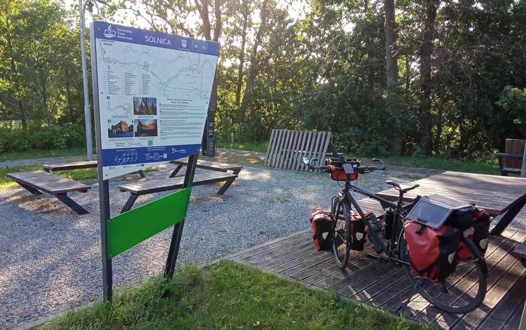 Après cette belle balade en bord de lagon, je parviens dans la ville de Tolkmicko. A nouveau, je ne trouve aucun café ouvert. Coup de bol, je m’arrête devant une marchande de glace au cas où. Elle fait du kawa et également de délicieux gâteaux faits maison dont un à la fraise des bois et aux épinards. Évidemment, je teste : un délice ! Je repars vers 11h pour la traversée de la forêt.