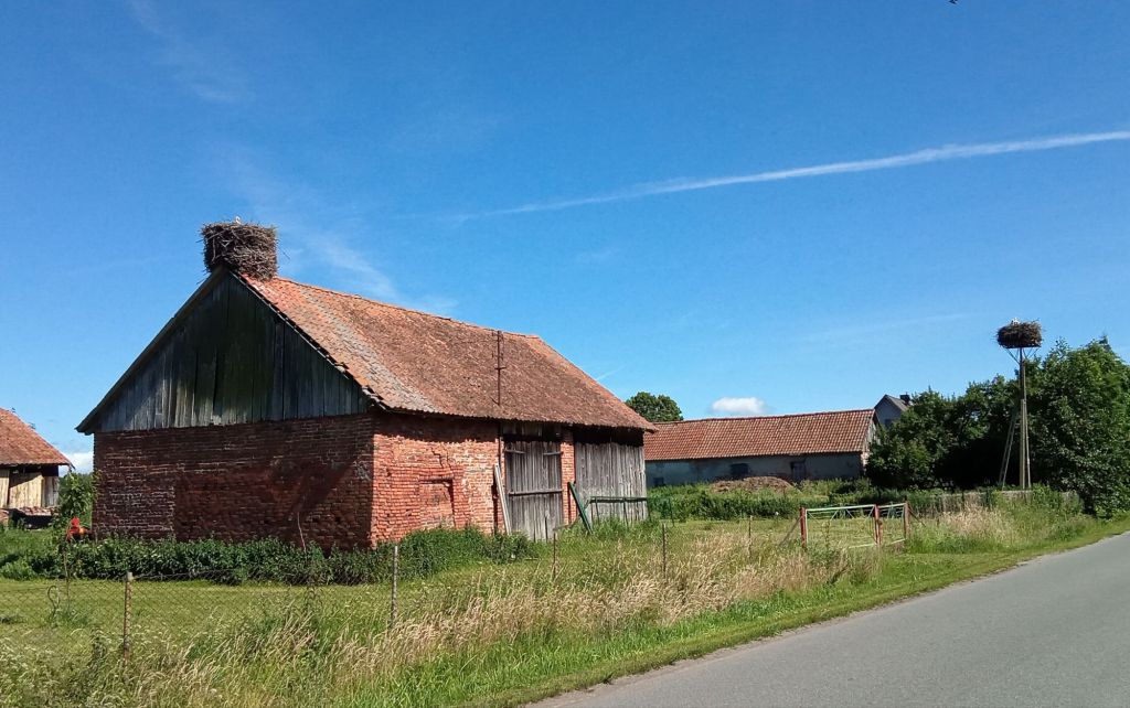 J’emprunte une nouvelle petite route après avoir traversé le village aux cigognes. D’habitude, depuis mon départ, chaque village possède un, voire deux, promontoires où nichent un couple de cigognes et leurs cigogneaux. Mais là, il y a des promontoires partout ainsi que des nids construits sur le toit des granges.