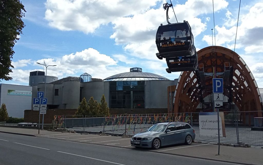Après cette pause bienvenue, je repars vers Druskininkai. Je rejoins la petite ville Leipalingis par une charmante petite route avant d’emprunter la route principale 180. Cela circule un peu plus mais, comme en Pologne, les automobilistes respectent la distance de sécurité. A l’entrée de la ville, j’emprunte une belle piste cyclable longeant la rivière Nemunas.